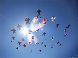 Wingsuit to sport, w którym ludzie ubrani w specjalny kombinezon wyskakują np. z helikoptera i następnie szybują.